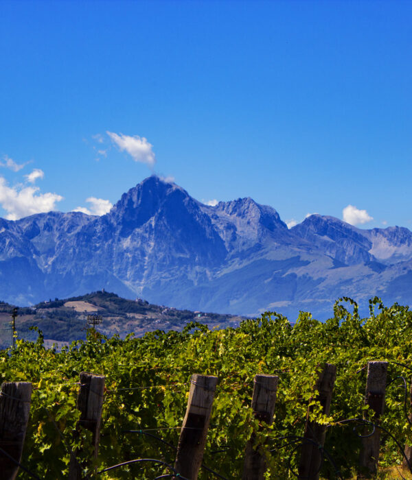 Camminando nei vigneti è possibile ammirare la maestosità del Gran Sasso e della Maiella e i declini collinari che degradano dolcemente fino al litorale.