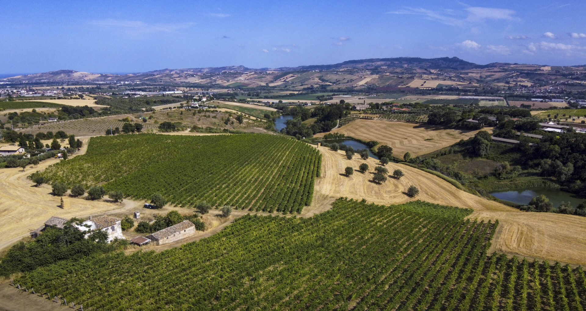 I vigneti si sviluppano a pochi chilometri dal mare Adriatico e dall’Appennino centrale a circa 300-350 metri di altezza sul livello del mare, beneficiando dell’azione termoregolatrice delle brezze marine e dei venti montani.